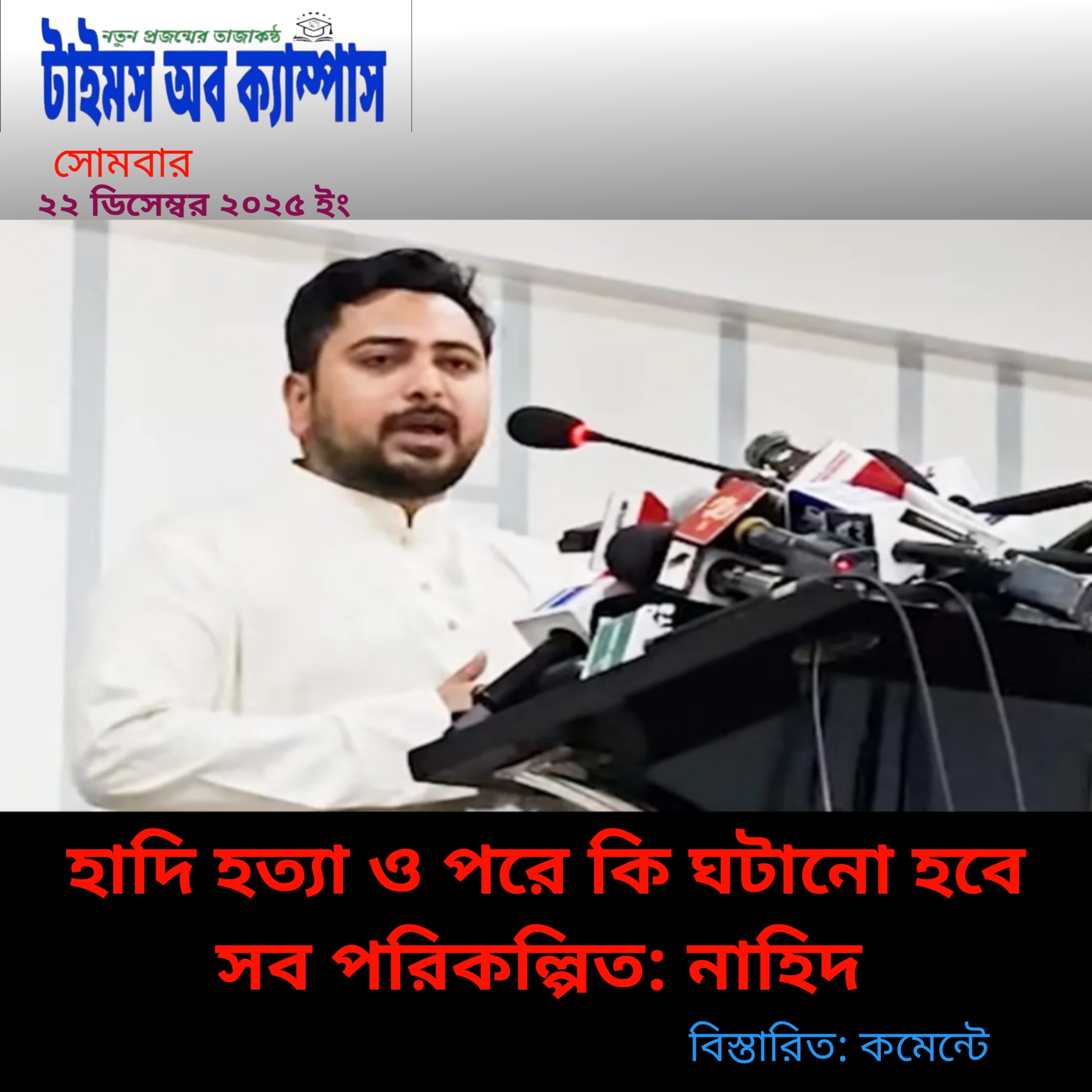 হাদিকে হত্যা ও পরে কী ঘটানো হবে, সব পূর্বপরিকল্পিত : নাহিদ