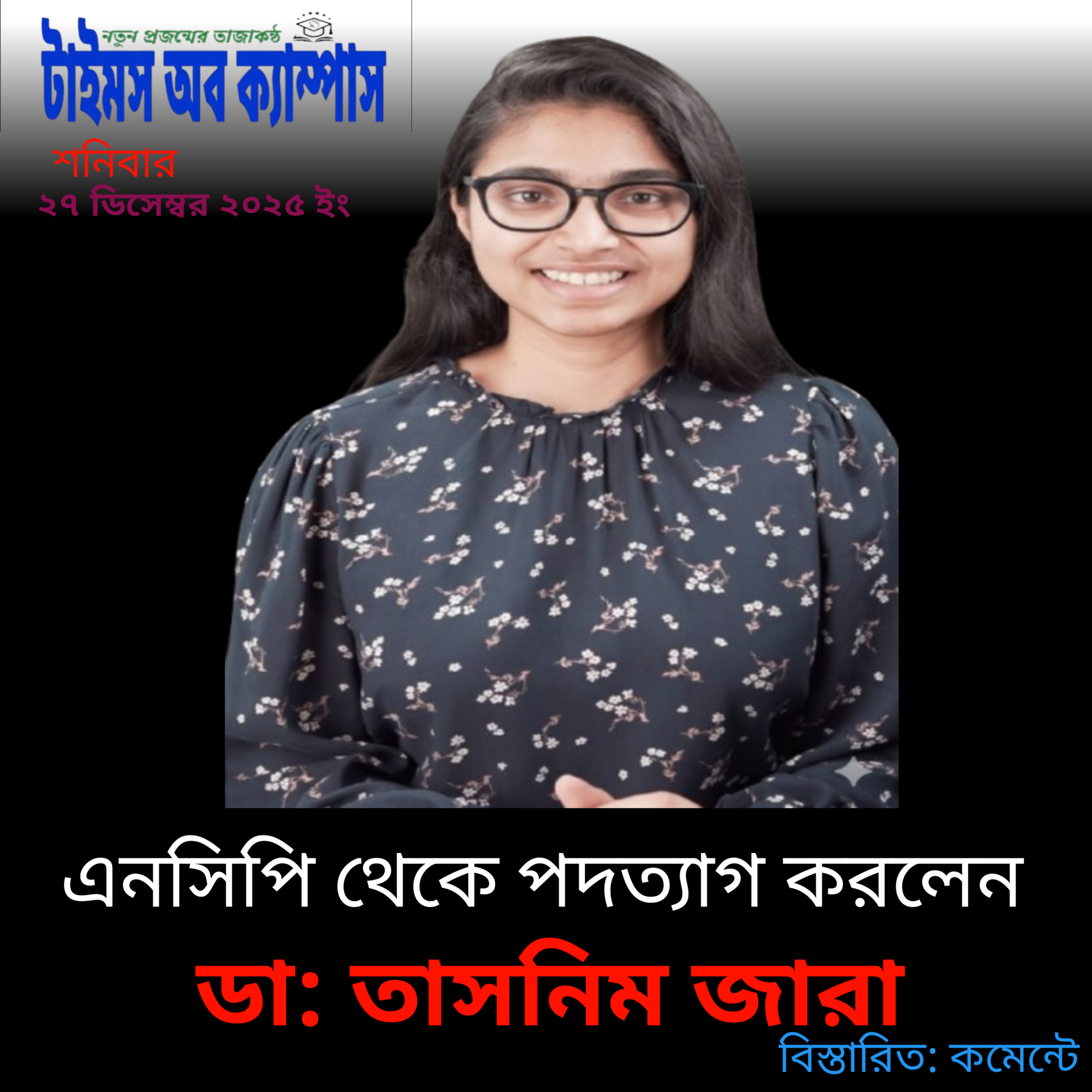 এনসিপি থেকে ডা: তাসনিম জারার পদত্যাগ