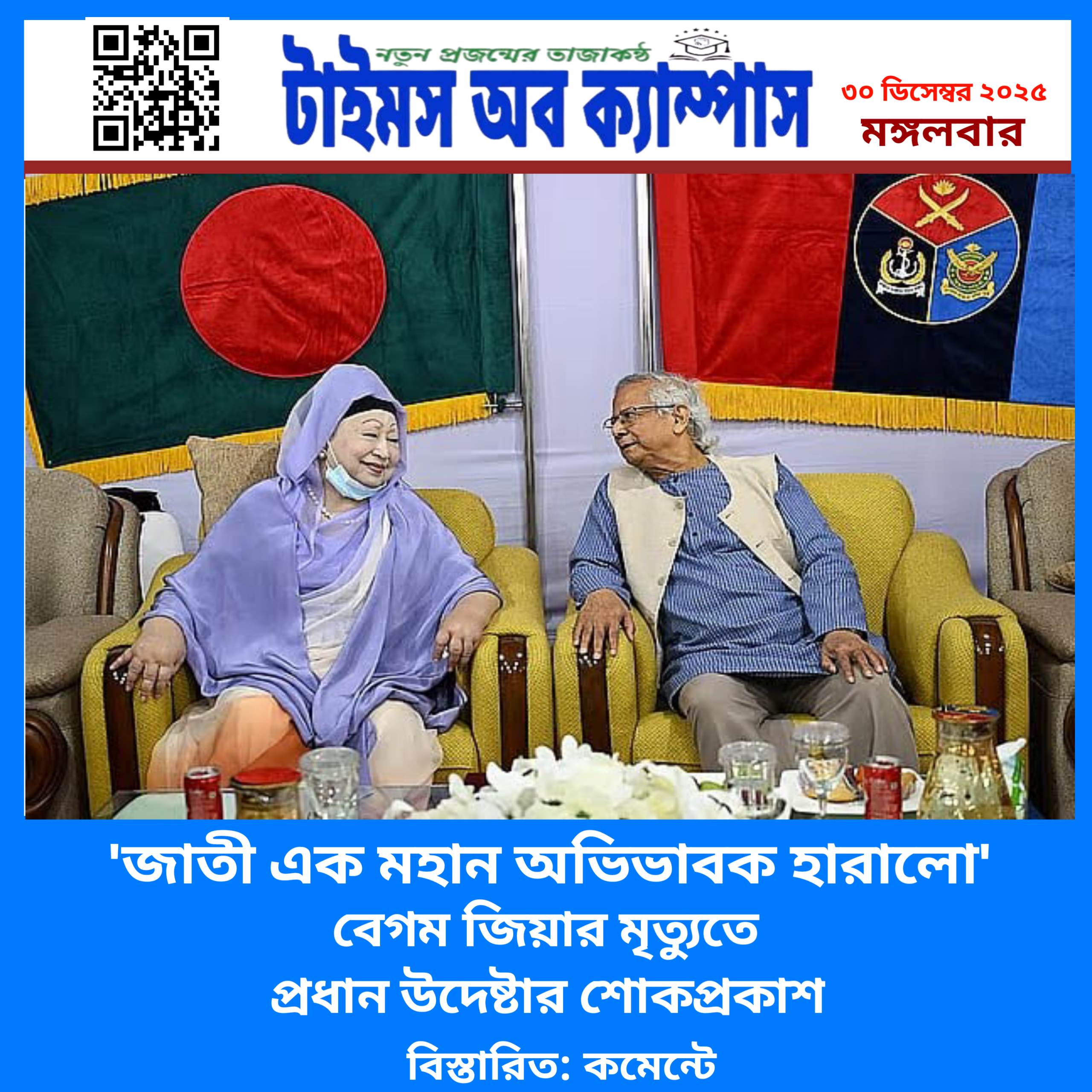 বেগম খালেদা জিয়ার মৃত্যুতে প্রধান উপদেষ্টার শোকপ্রকাশ