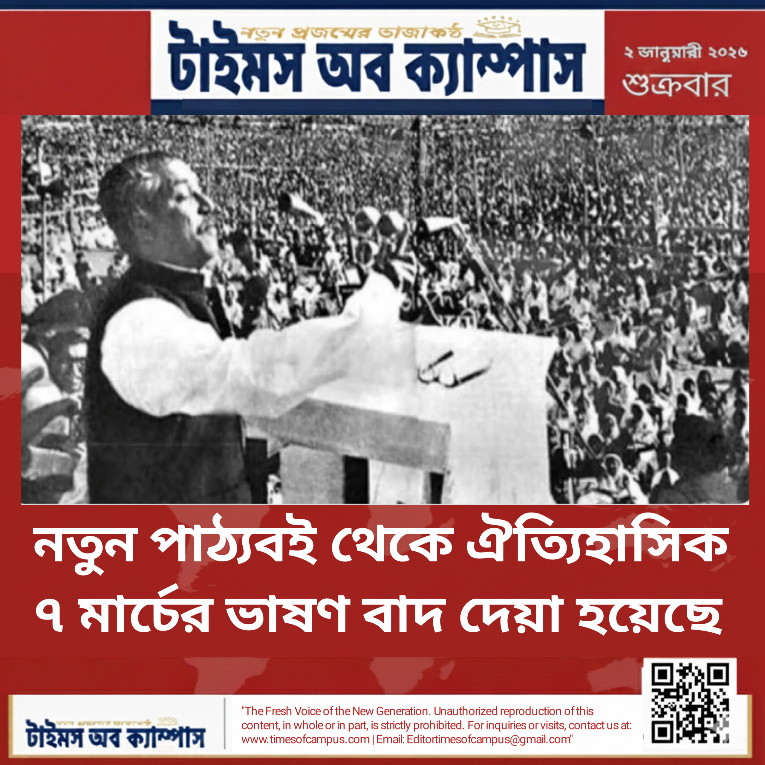 নতুন পাঠ্যবই থেকে শেখ মুজিবুর রহমানের ঐতিহাসিক ৭ মার্চের ভাষণ বাদ দেওয়া হয়েছে