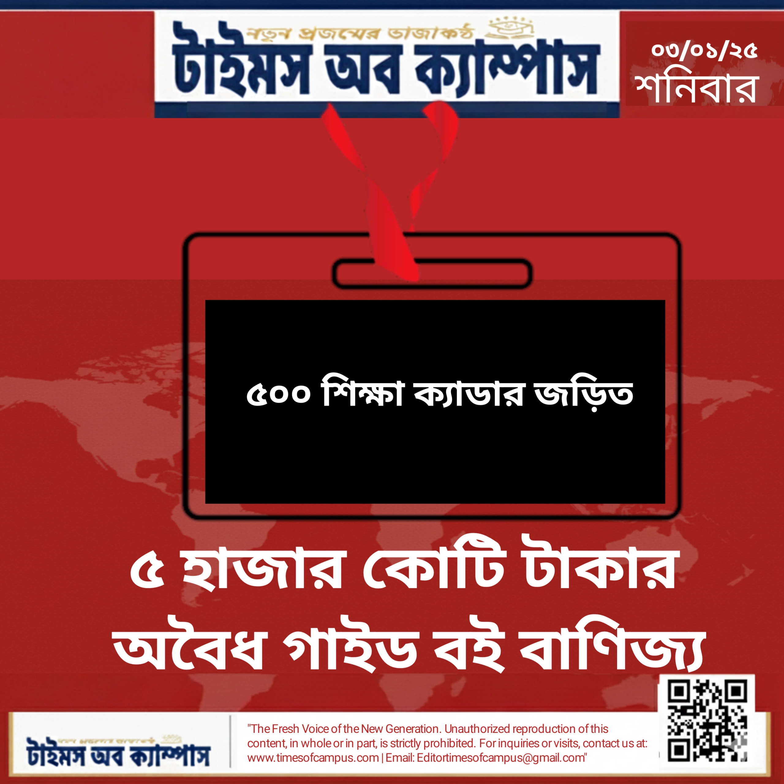 ✪ নিজস্ব প্রতিবেদক: দেশের শিক্ষা ব্যবস্থায় জেঁকে বসেছে ৫ হাজার কোটি টাকার এক বিশাল অবৈধ গাইড বই বাণিজ্য। এই ব্যবসার