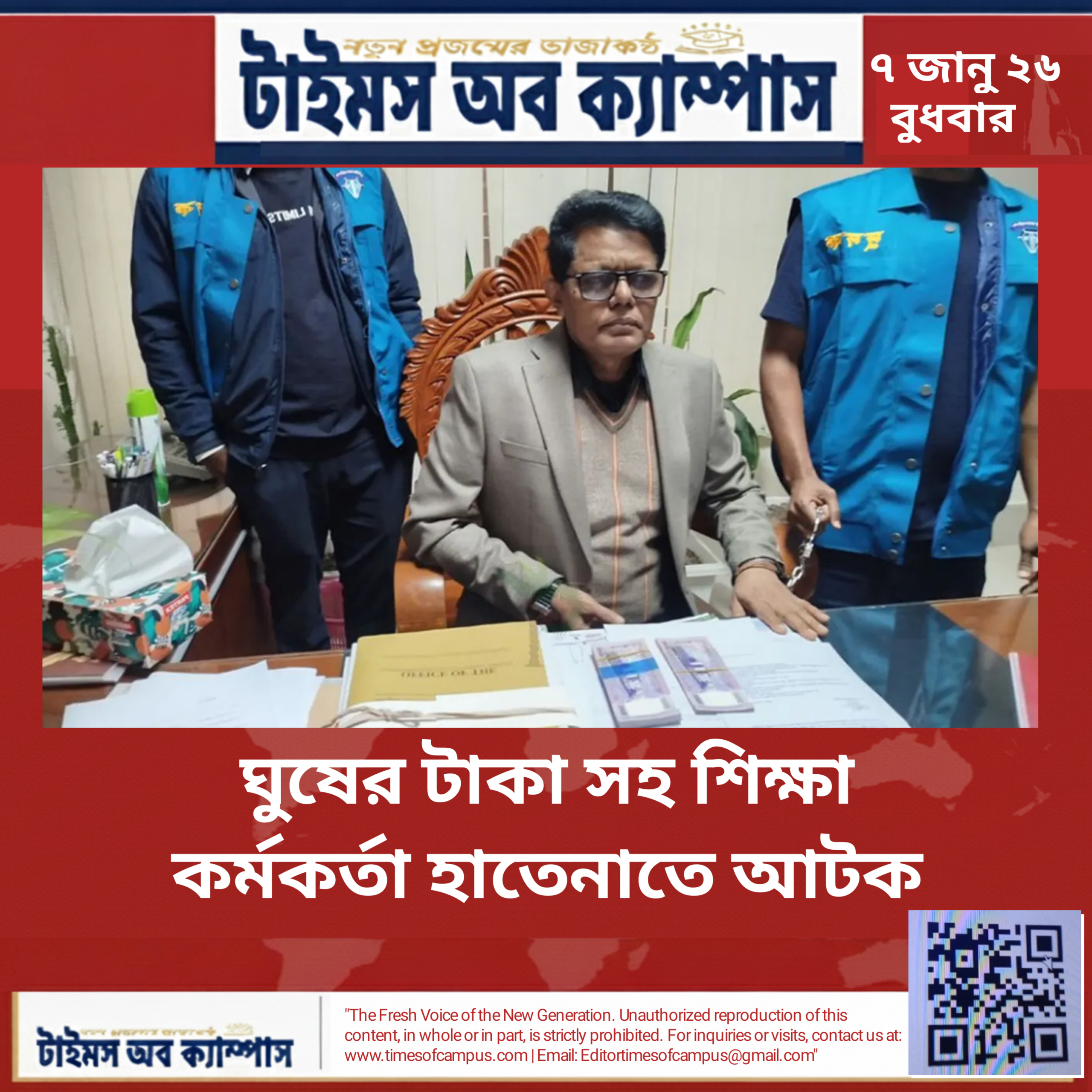 ঘুষের টাকাসহ শিক্ষা কর্মকর্তা হাতেনাতে আটক