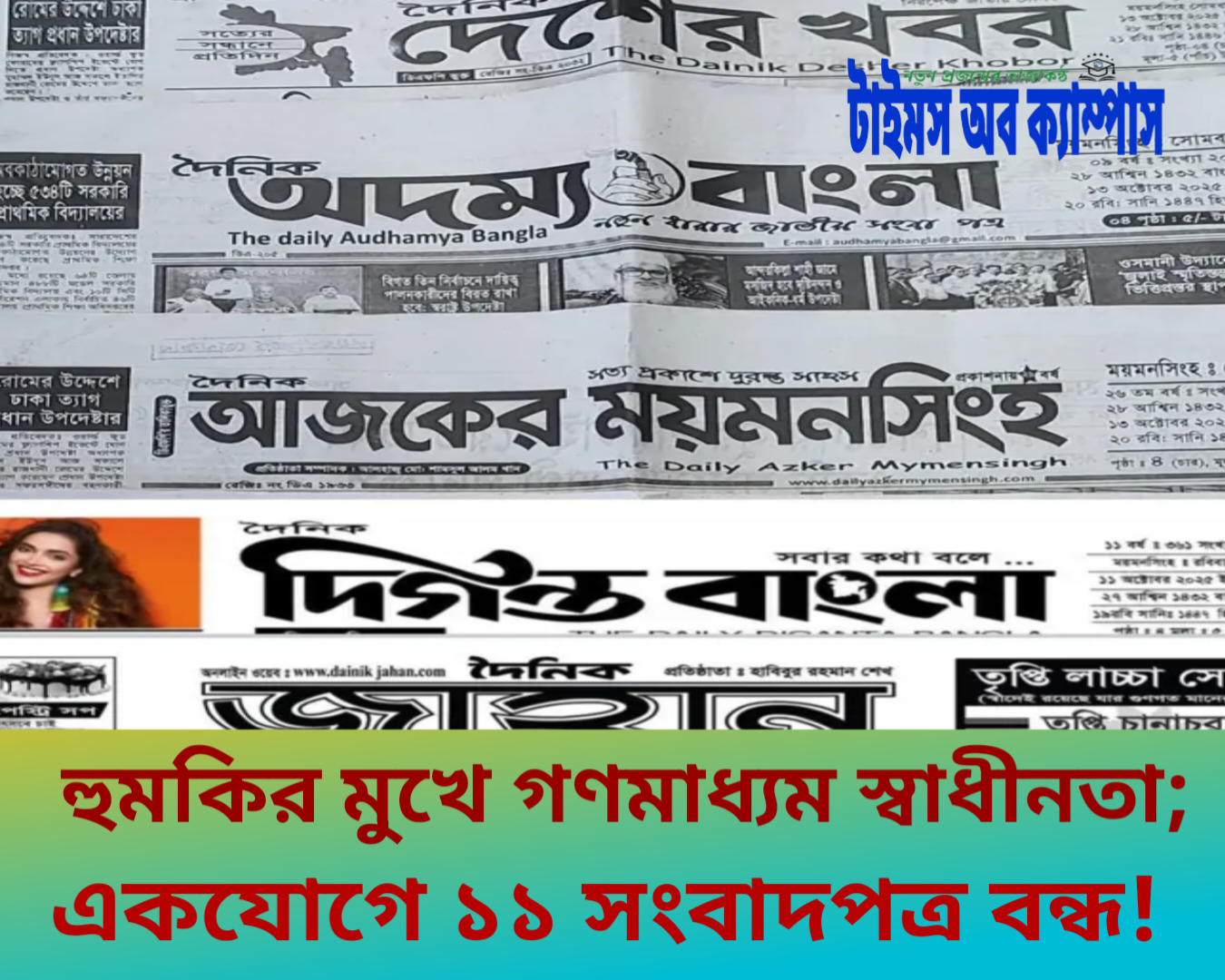 বাংলাদেশের গণমাধ্যম স্বাধীনতা আবারও প্রশ্নের মুখে। ময়মনসিংহে একযোগে ১১টি সংবাদপত্রের ঘোষণাপত্র (ডিক্লারেশন) বাতিল করেছে জেলা প্রশাসন— যা স্থানীয় সাংবাদিক মহলে