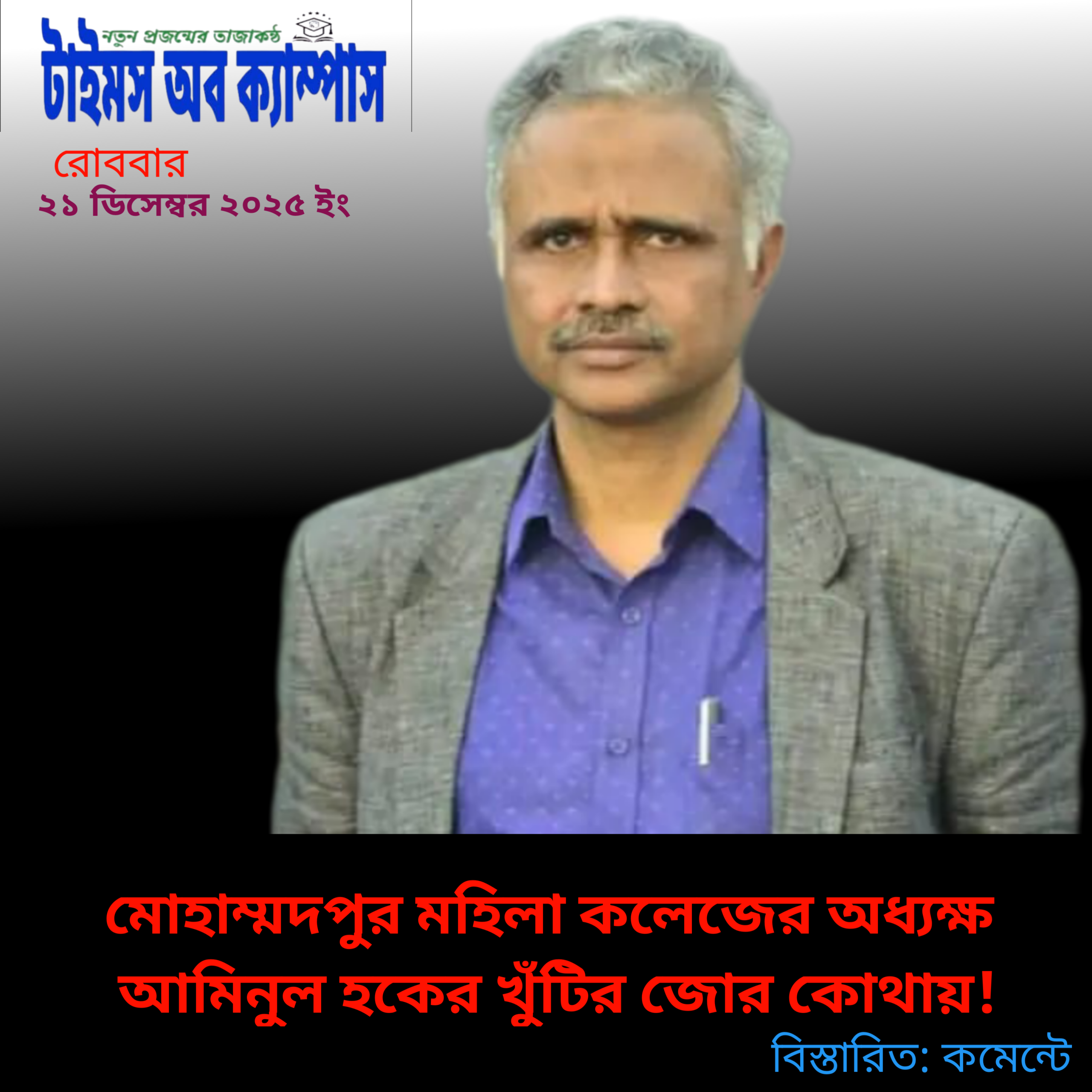 মোহাম্মদপুর মহিলা কলেজের অধ্যক্ষ আমিনুল হকের খুঁটির জোর কোথায়!